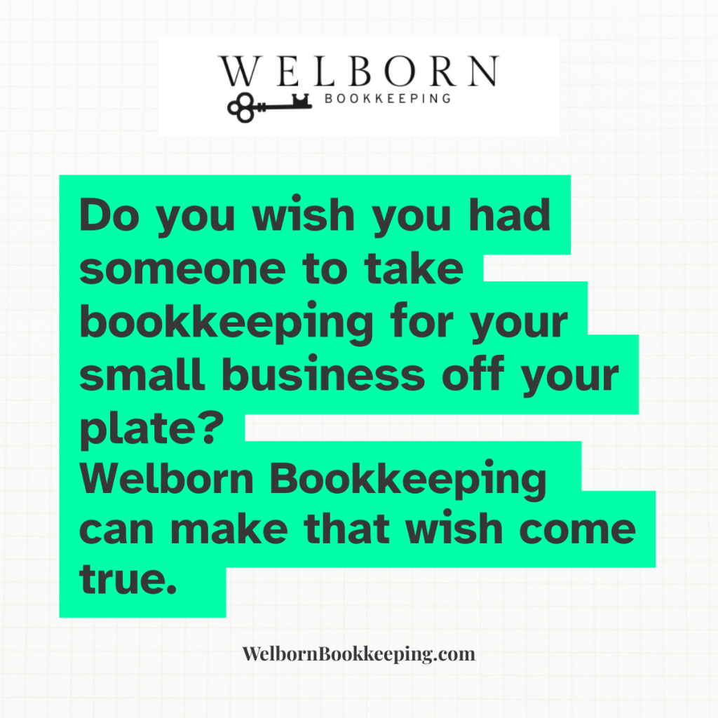 Do you wish there was someone who could take bookkeeping for your small business off your plate? Welborn Bookkeeping will make your wish come true for as little as $10 a day. Call for a free, no-pressure 30 minute consultation to find out how we can save you time and money. #bookkeeping #QuickBooks